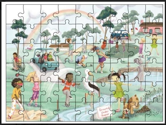Arriving Fall 2023! For those who know Coach Nicole, she can't help but create items that combine education with brain activity and movement. This 2-in-1 activity challenges is more than just a puzzle, it allows children to create a 54-piece busy golf scene adapted from Nicole's book Let's Play Golf and then find specific characters and learn golf terms within the puzzle... it's like a big golf party! Create, learn, enjoy and then take apart to do it again! For ages 4-8+